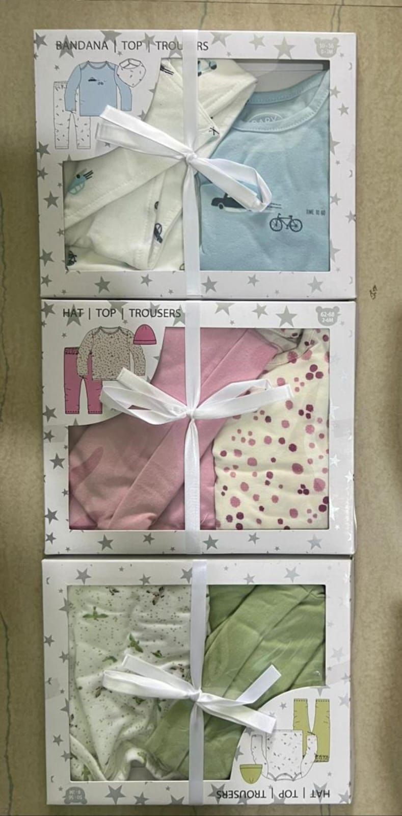 | Included Items | Bodysuits, Bibs, Socks, Hats, Blankets |